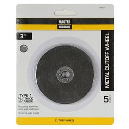 Master Mechanic, 5 Pack, 3" x 3/32" x 3/8", Cut Off Wheel, For Use In A Die Grinder, For Cutting Aluminum, Metal, Pipe & Copper, Type 1 Abrasive, 3/8" Center Hole, Maximum RPM 20,400.